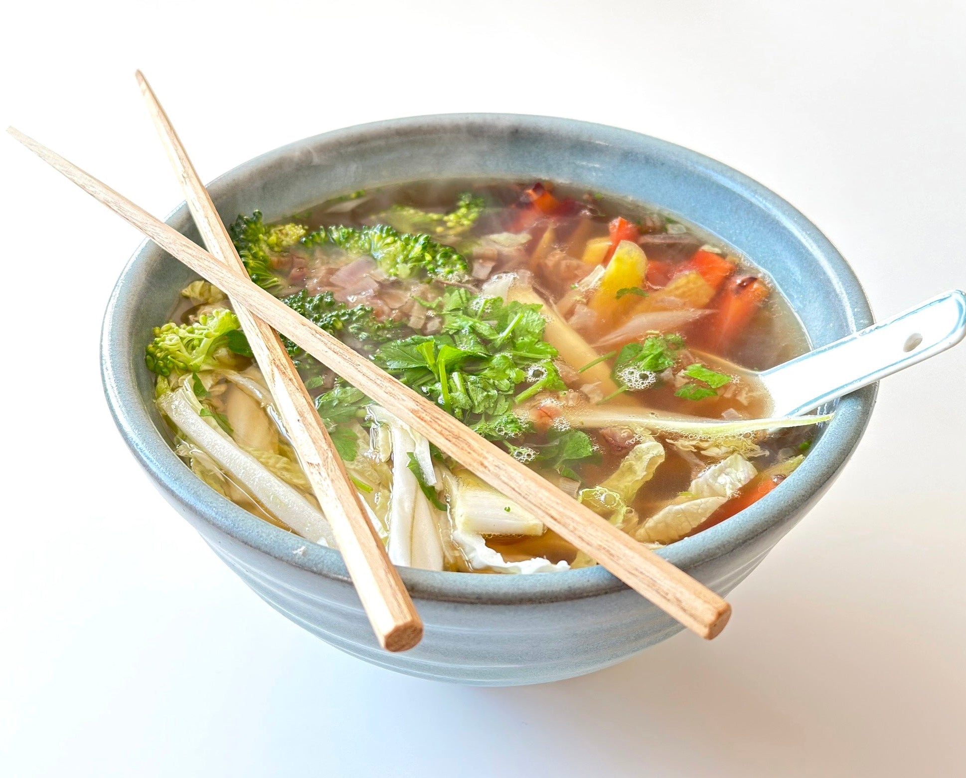 Mach dir im Handhumdrehen eine köstlich-gesunde Mahlzeit: Mit TrueBrodo Knochenbrühe ist deine leichte Power-Suppe in nur 6 Minuten fertig.